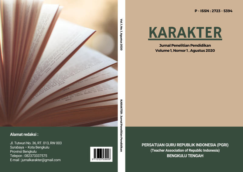 KARAKTER is an Educational Research Journal published by Persatuan Guru Republik Indonesia (Teachers Association of Republik Indonesia) Bengkulu Tengah, Provinsi Bengkulu, Indonesia. This journal contains the research and studies related to the development of education at all grades, which are published regularly twice a year (March and August). The journal KARAKTER is intended as a forum for educational practitioners to publish their research in order to be a reference and inspiration for different parties in writing.